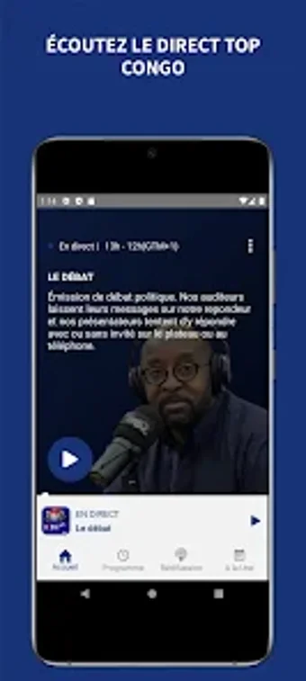 อยู่ในภาพลักษณ์และเชื่อมต่อกับชีพจรของชาติผ่านแอปพลิเคชันที่ใช้ง่ายนี้ ไม่ว่าคุณจะชอบนั่งเล่นและฟังหรือมีส่วนร่วมโดยการโทรเข้าร่วม Top Congo FM จะให้คุณเป็นคนที่อัพเดตเสมอกับข่าวสารและเหตุการณ์ล่าสุดในคองโก